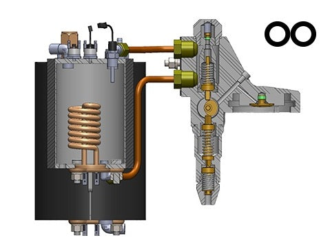 El agua caliente y el vapor comparten el mismo circuito, por lo que el espresso y la espuma de leche se producen secuencialmente debido a sus diferentes requisitos de temperatura. Al igual que con nuestras máquinas Puristika y Classika PID
