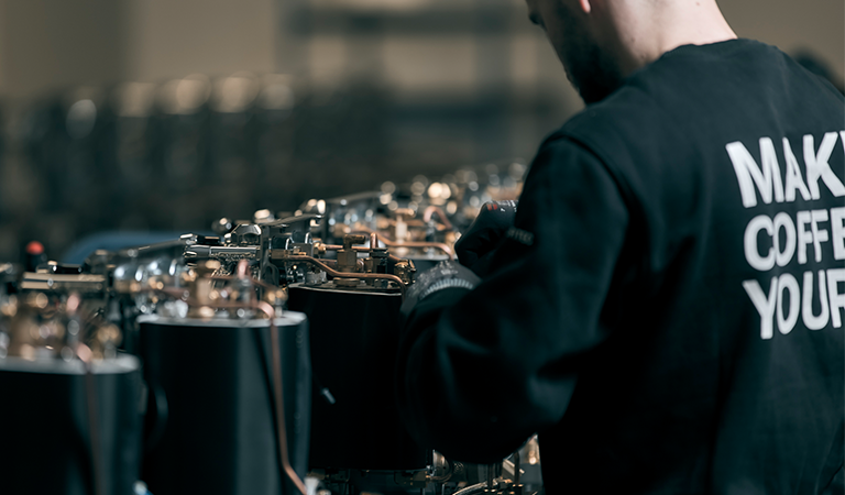 Desde el principio, se tomó la decisión consciente de producir en Italia, cuna de la cultura del espresso. Aquí, las máquinas se fabrican artesanalmente con pasión por la tradición, la estética y el arte de preparar café. La artesanía italiana confiere a cada producto su carácter distintivo: un equilibrio entre diseño atemporal y precisión artesanal que celebra la esencia del auténtico espresso.