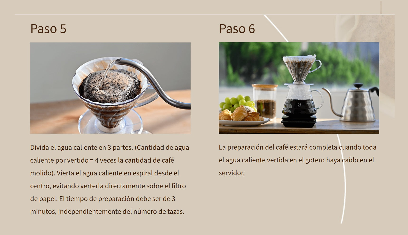 A veces se utiliza un hervidor de cuello de cisne para controlar mejor el paso del agua por el filtro de la cafetera, y el filtro se enjuaga previamente para eliminar el sabor a papel. Los puristas utilizan incluso un temporizador o un cronómetro para evitar infusionar demasiado el café. Por supuesto, puede prescindir de algunos pasos si no tiene tiempo o el equipo adecuado, pero cuanto más afine su paladar, más se dará cuenta de la importancia de estos detalles para la calidad final del café.