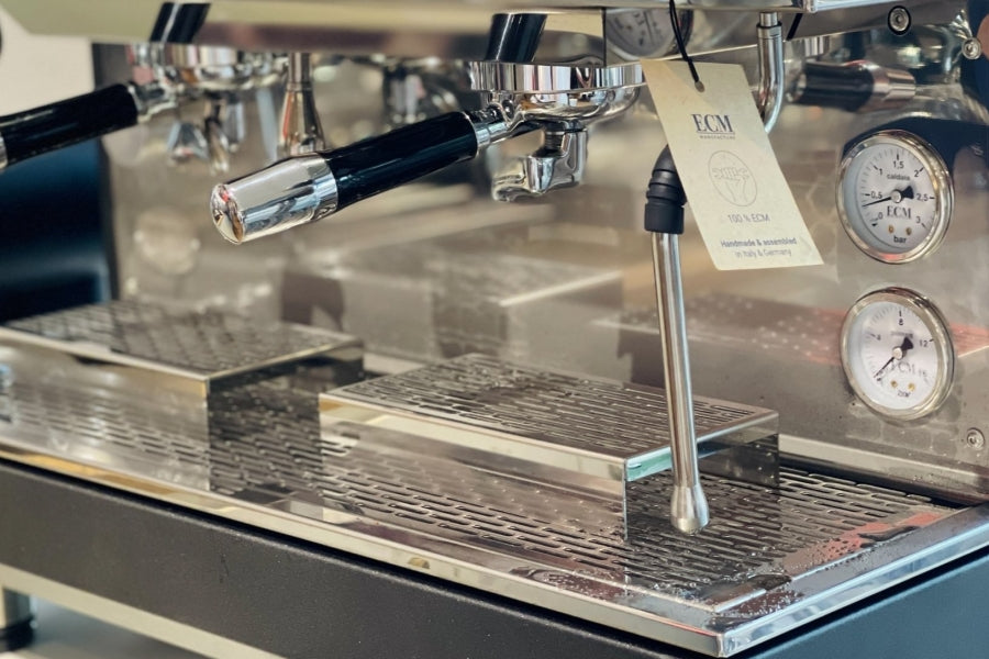 - 2 cabezales de grupo de café anulares, compatibles con todos los portafiltros ECM