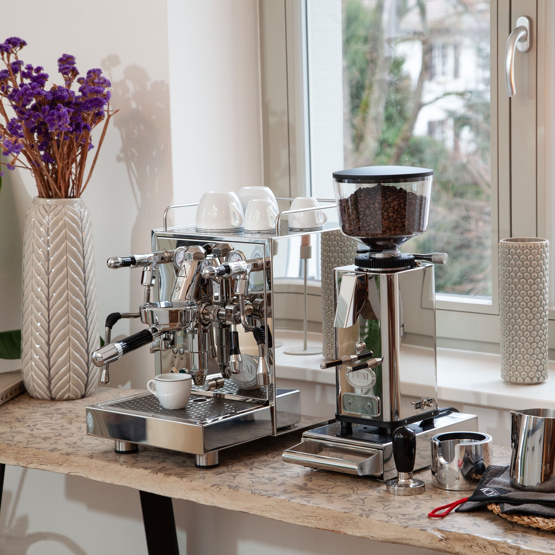 Con su revolucionario controlador PID que monitorea y regula activamente la temperatura en el grupo de preparación, la ECM Mechanika MAX redefine el potencial de las máquinas de café expreso con intercambiador de calor. Su elegante exterior alberga funciones sólidas como horarios de encendido y apagado programables, varias opciones de preinfusión, recordatorios de mantenimiento y, lo más importante, una bomba rotativa compacta y conectable.